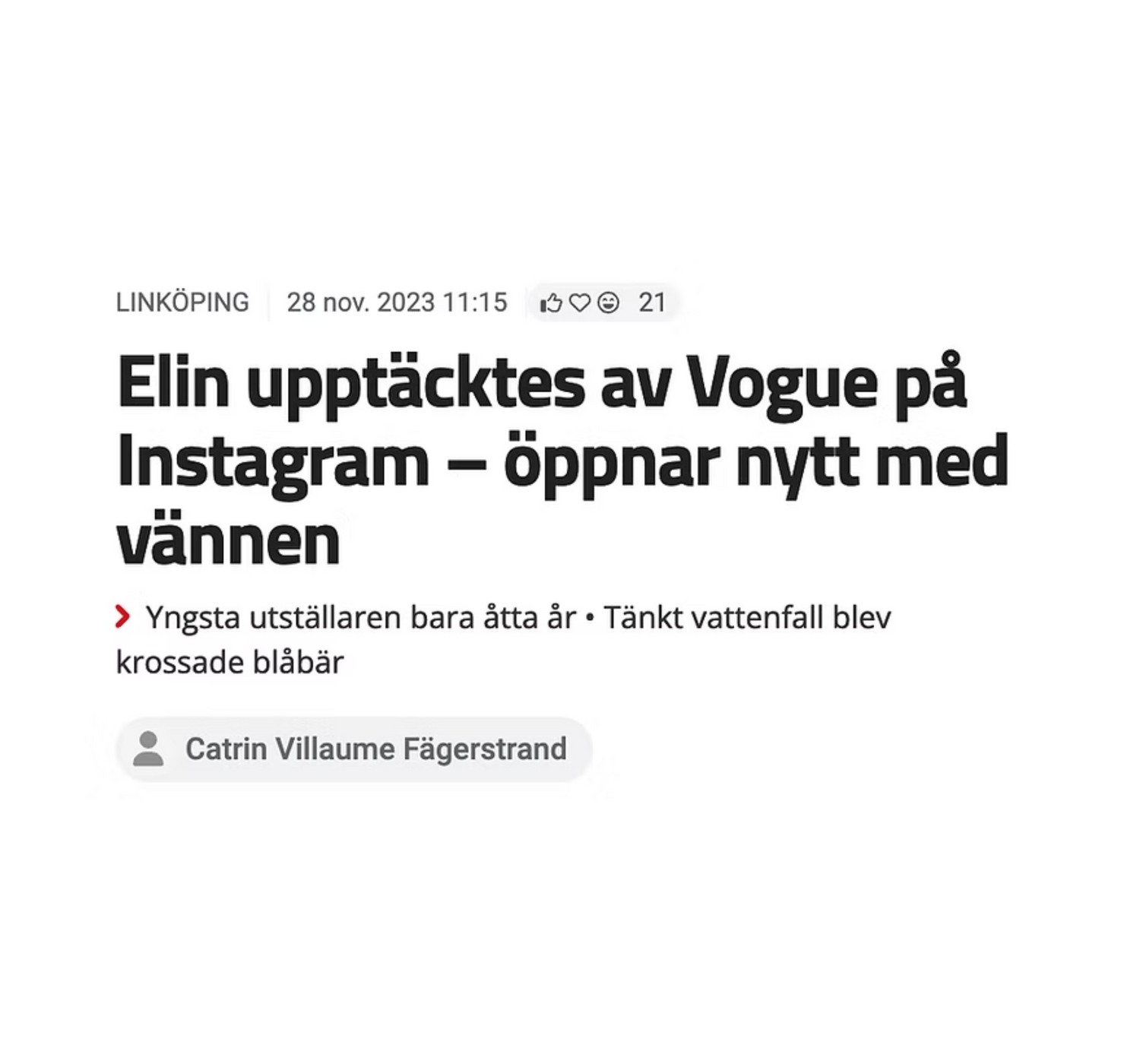 Reportage i Östgötacorrespondenten (Corren) om mig och mitt varför i företagandet. Om min resa genom utbrändhet och in i konst och inredning.